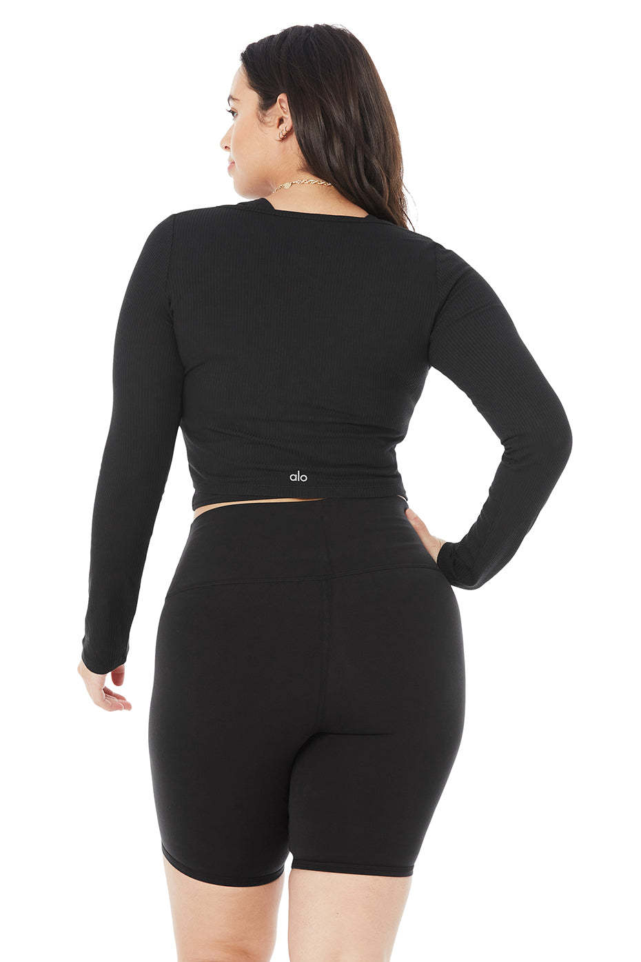 An ultra-cropped cardi with a pretty low V? Yes, please. The Ribbed Cropped Whisper Cardigan has a soft, lightweight feel and front button closure. Wear it with your favorite athelo bra and high-waist legging.