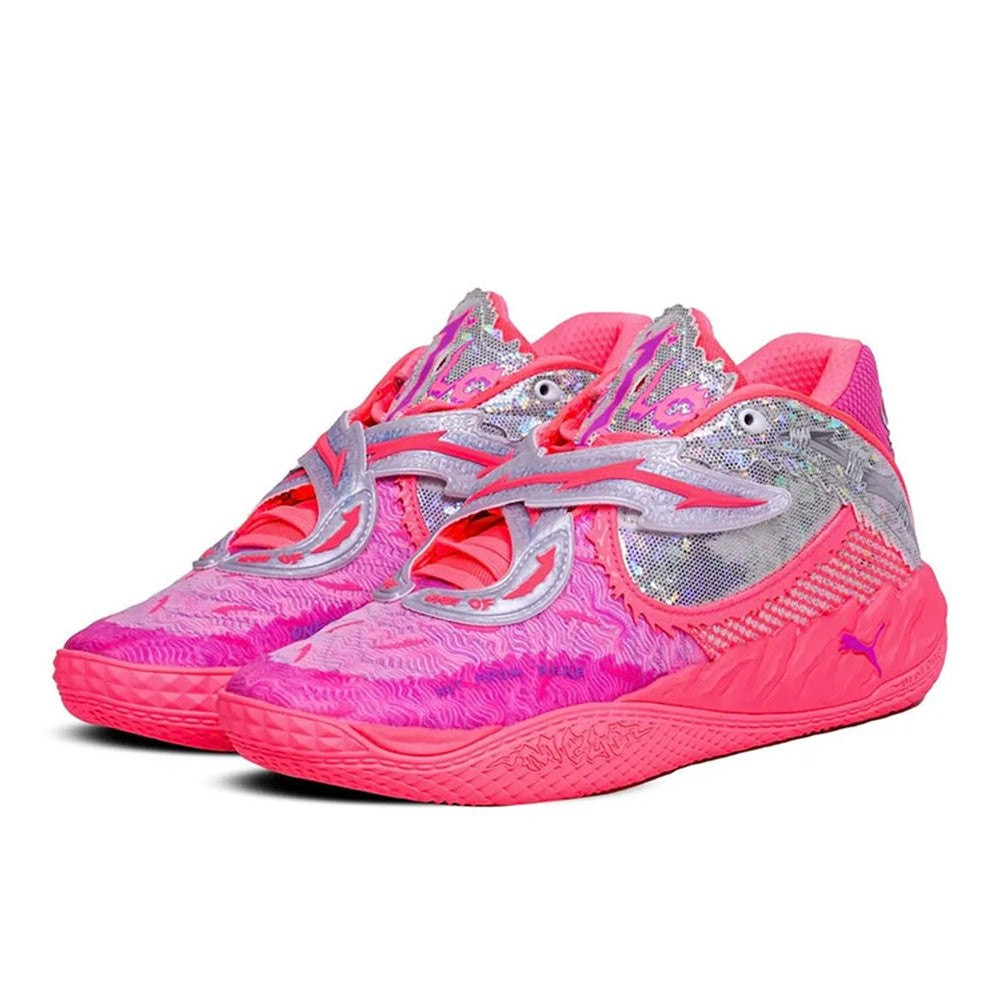 LaMelo Ball’s 5th signature shoe is set to become the new “rockstar” in the basketball world. The new molded forefoot strap lockdown system helps to highlight unique material executions and LaMelo storytelling elements that elevate The MB.05. The first drop of MB.05 marks the kickoff to Melo’s “World Tour”. The sunstruck pink color is complimented by iridescent prints and sparkling details throughout the silhouette to open the tour with a bang! Grab these to become the star of the show.