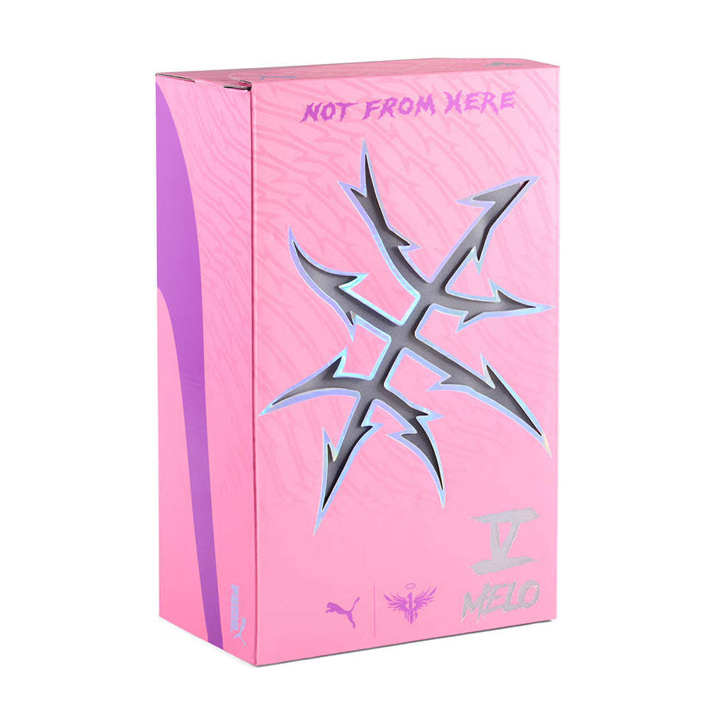 - Compression molded EVA foam providing superior responsiveness and cushioning in a lightweight midsole package. - High abrasion tread pattern for added traction with non-slip & non-marking rubber compounds. - Vamp mesh provides breathability and lockdown support. - Molded straps across the forefoot provide additional support and lockdown. - Internal TPU heel cage provides heel lockdown and lateral stability. CPU upper barbed component calls back to the “rockstar” aesthetic, with new Melo heel branding highlighting his logo and name.