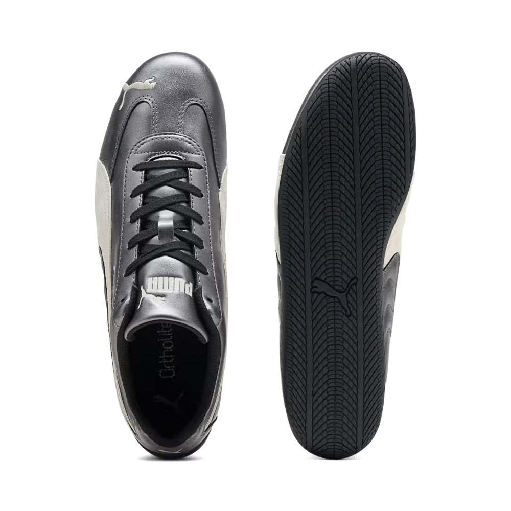 A PUMA icon inspired by the speed of the racetrack: the Speedcat OG. With a classic race shoe-inspired shape, sleek lines that almost look fast, and bold. Own the low profile trend with the most iconic silhouette in the world of Motorsport, today we bring it to the streetwear culture. The newest member, featuring a metallic leather base, is perfect for those who want to make a bold statement.