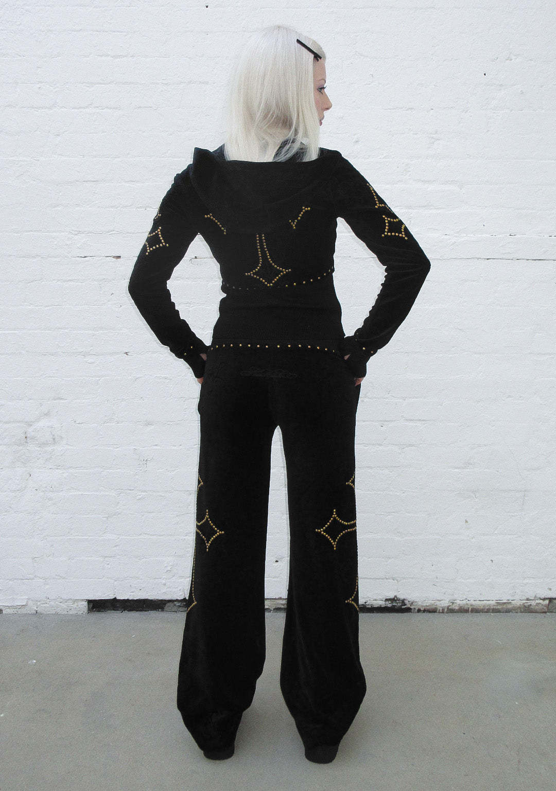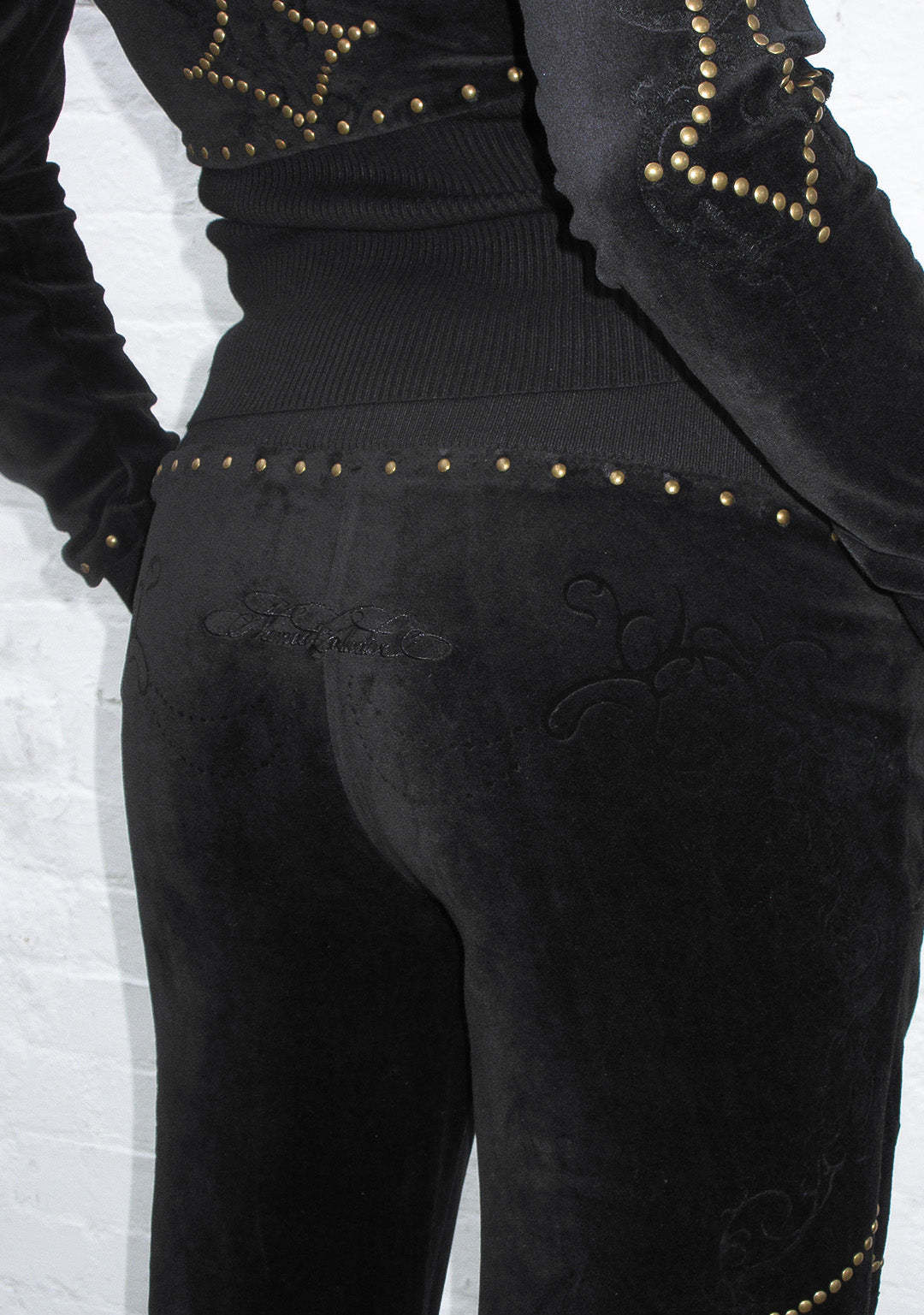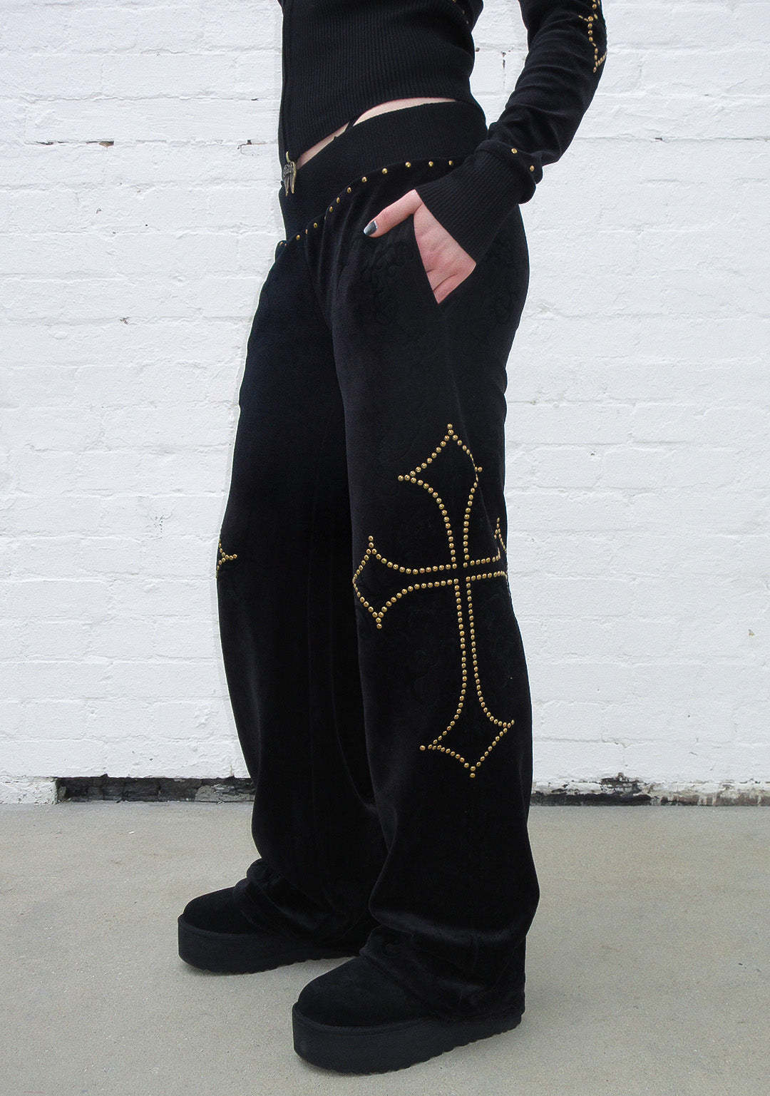 REBEL STUDDED VELOUR SWEATPANTS BLACK