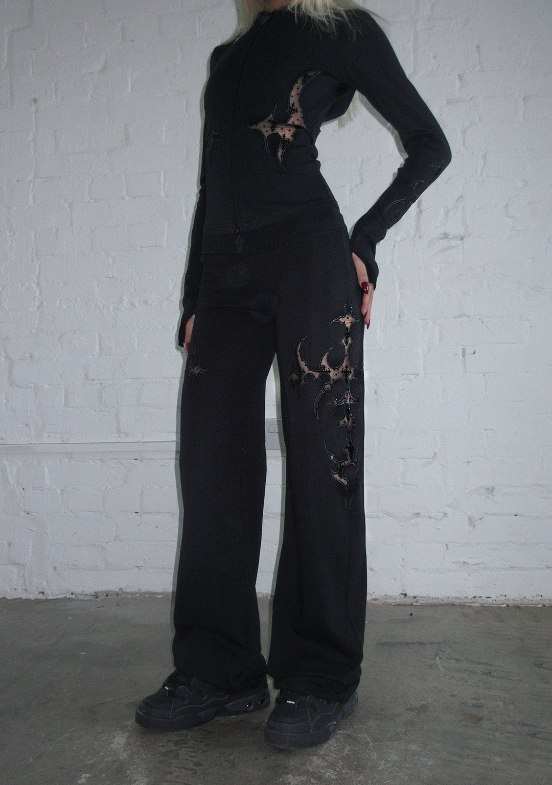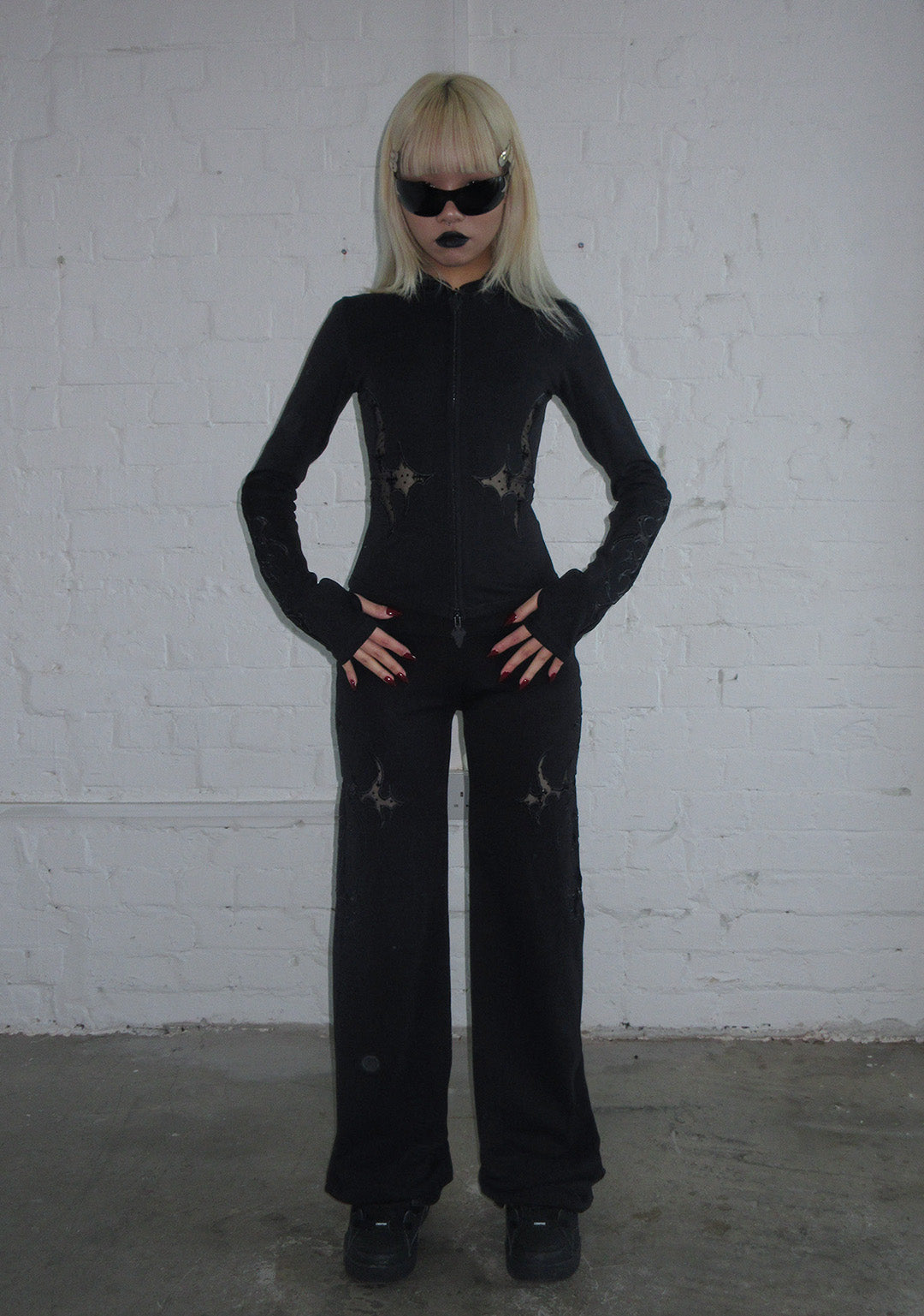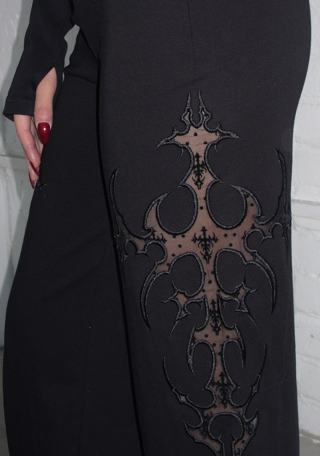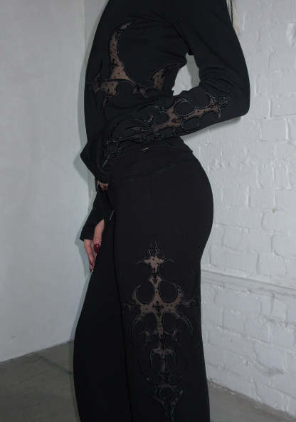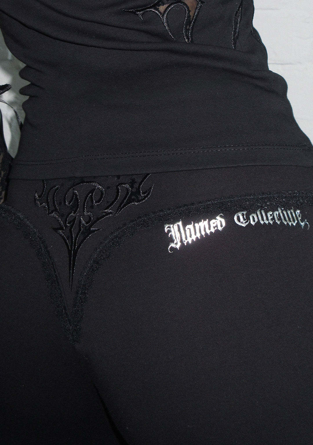 SINNER LACE CUT OUT SCULPT STRETCH PANTS BLACK