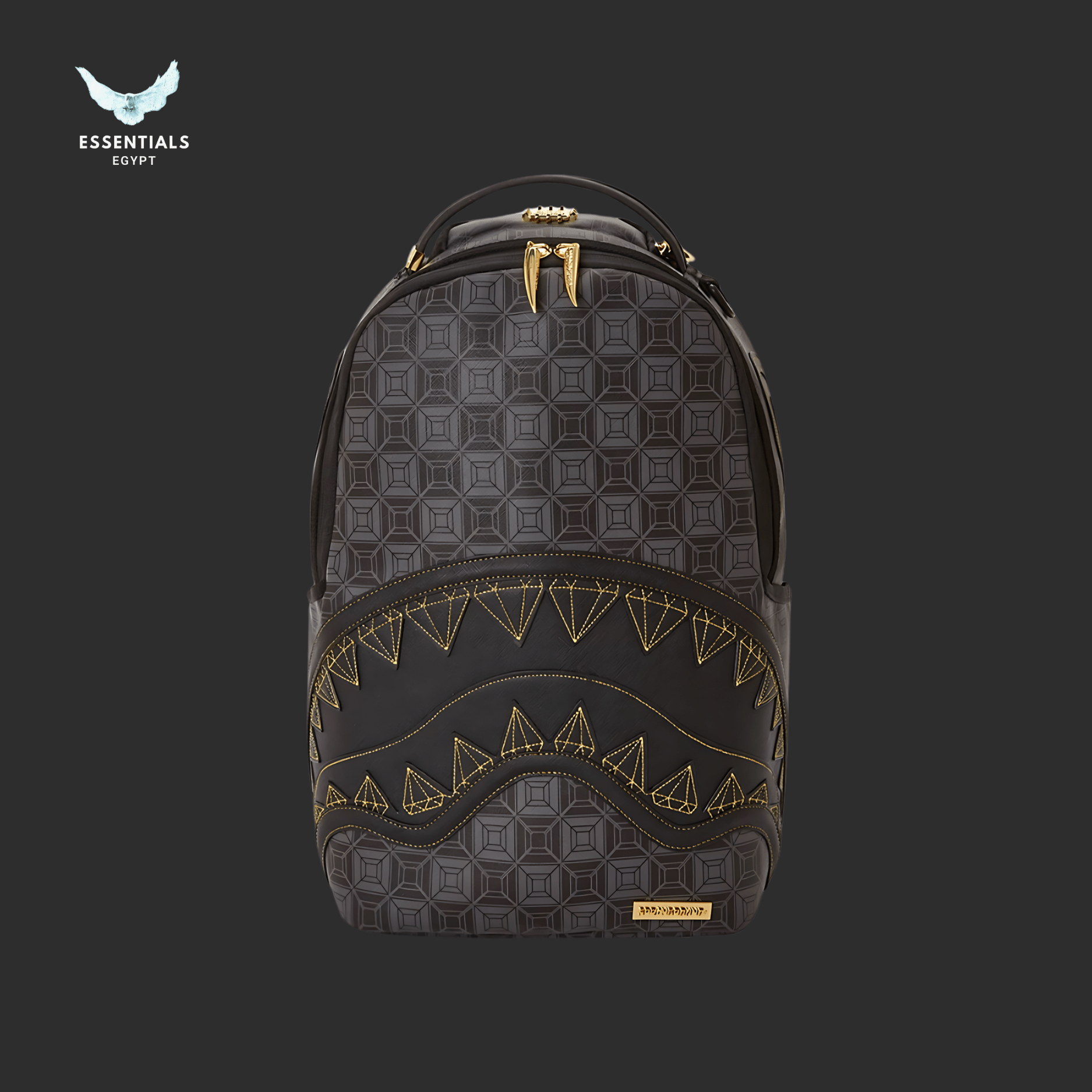 Futuristic grid pattern in grey with gold shark details. Premium finish. Ships in Egypt. Dimensions: 45.7 cm × 15.2 cm × 29.2 cm.