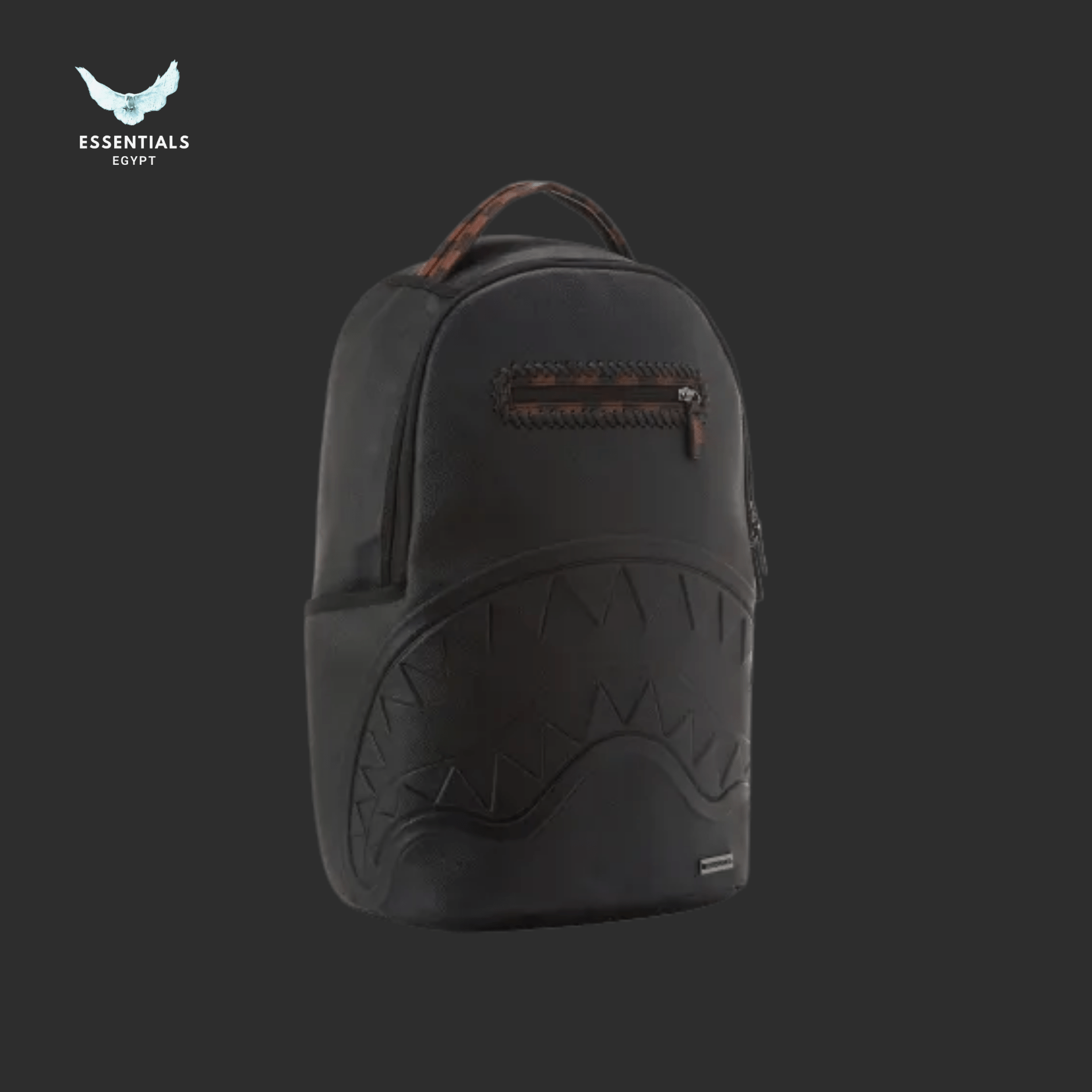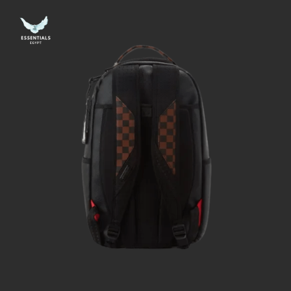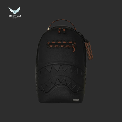 Sleek black backpack with subtle shark emboss and checkered accents. 100% authentic, perfect for streetwear fans in Egypt. Dimensions: 45.7 cm × 15.2 cm × 29.2 cm.