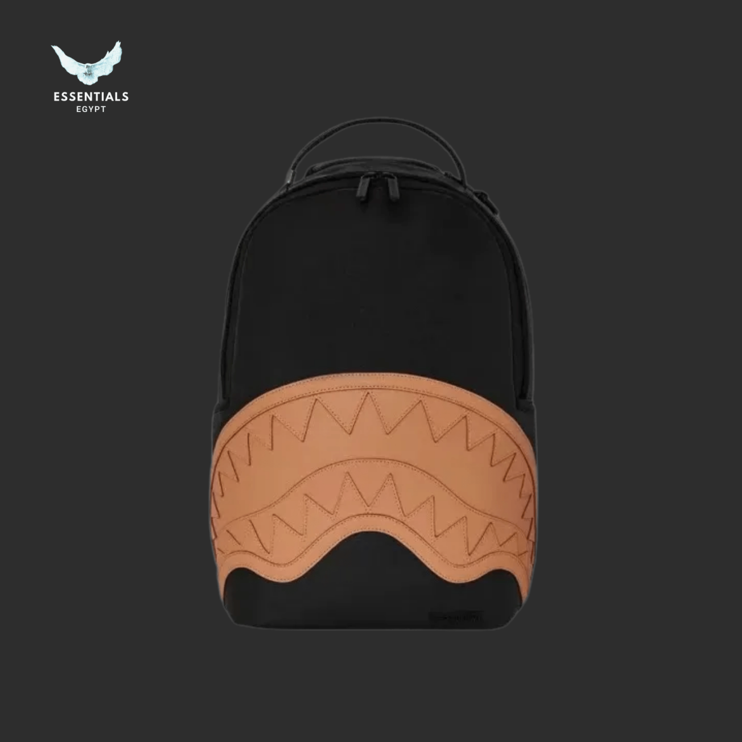 Sleek black backpack with tan shark mouth detail. 100% authentic, perfect for everyday style in Egypt. Dimensions: 45.7 cm × 15.2 cm × 29.2 cm.
