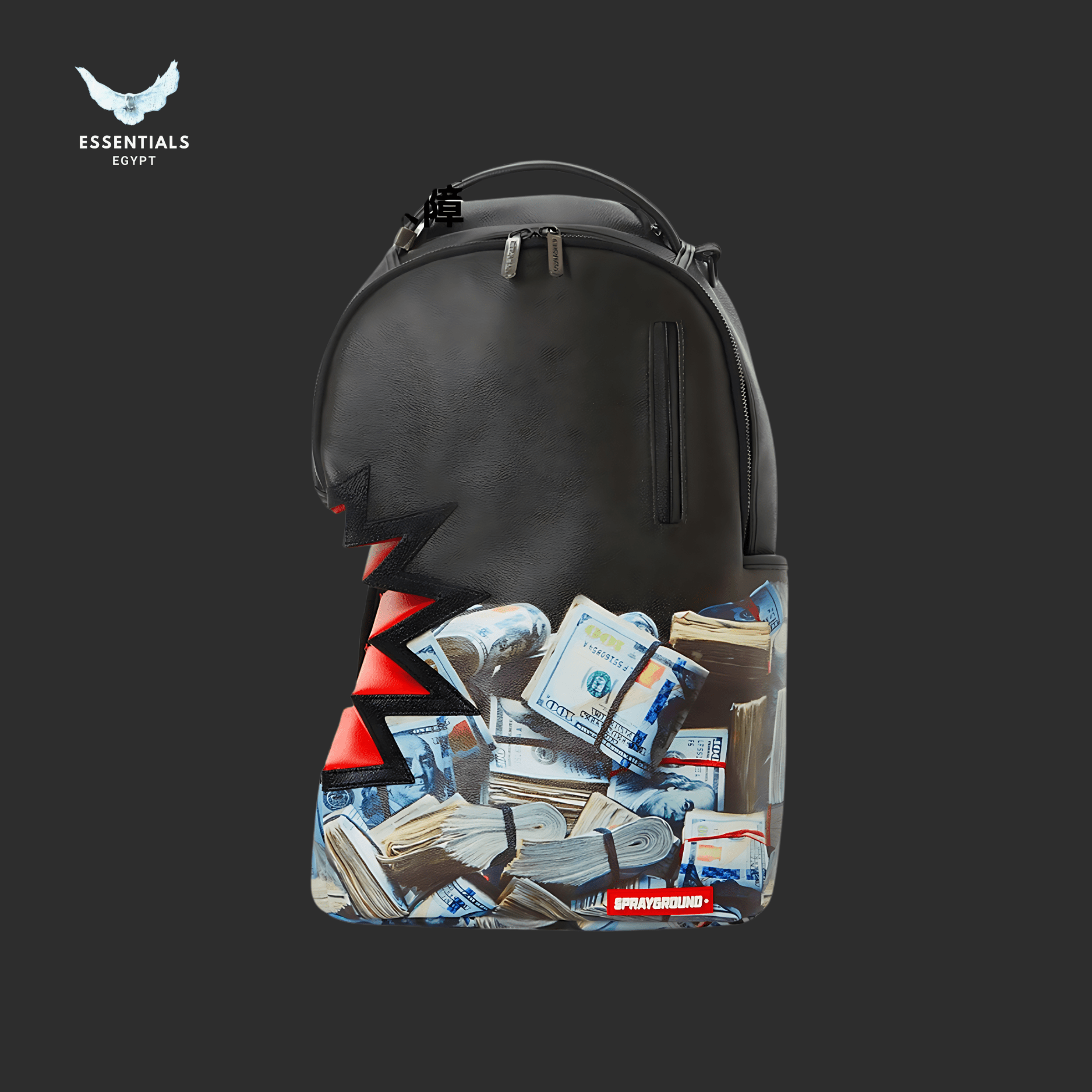 Classic shark mouth over a stacked cash graphic print. Eye-grabbing and functional. Dimensions: 45.7 cm × 15.2 cm × 29.2 cm.