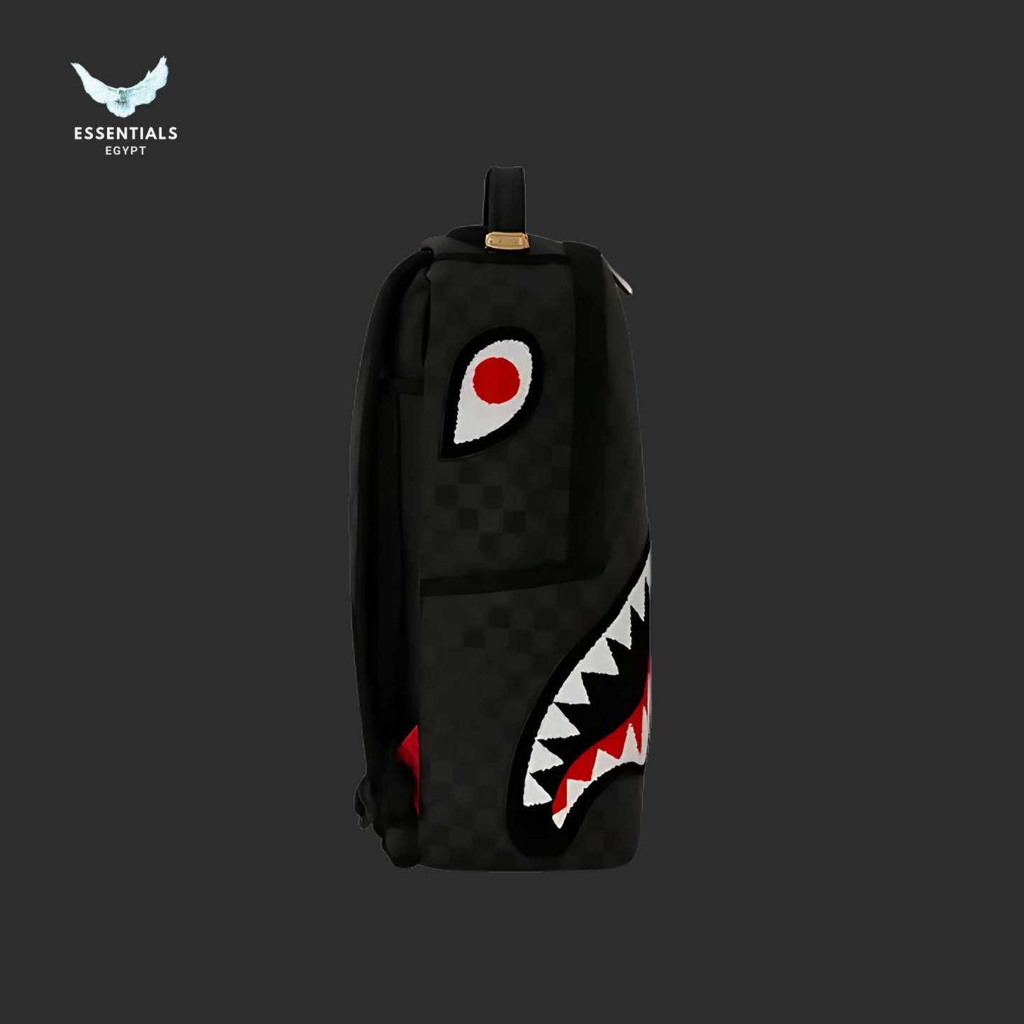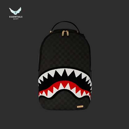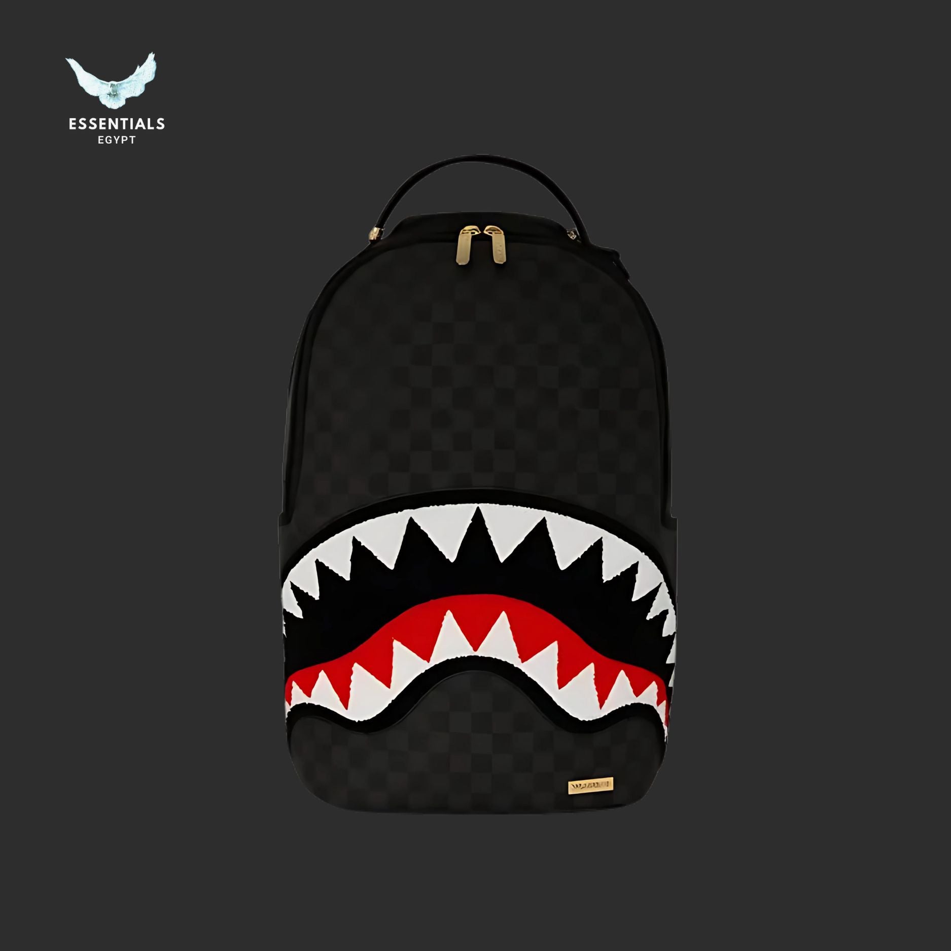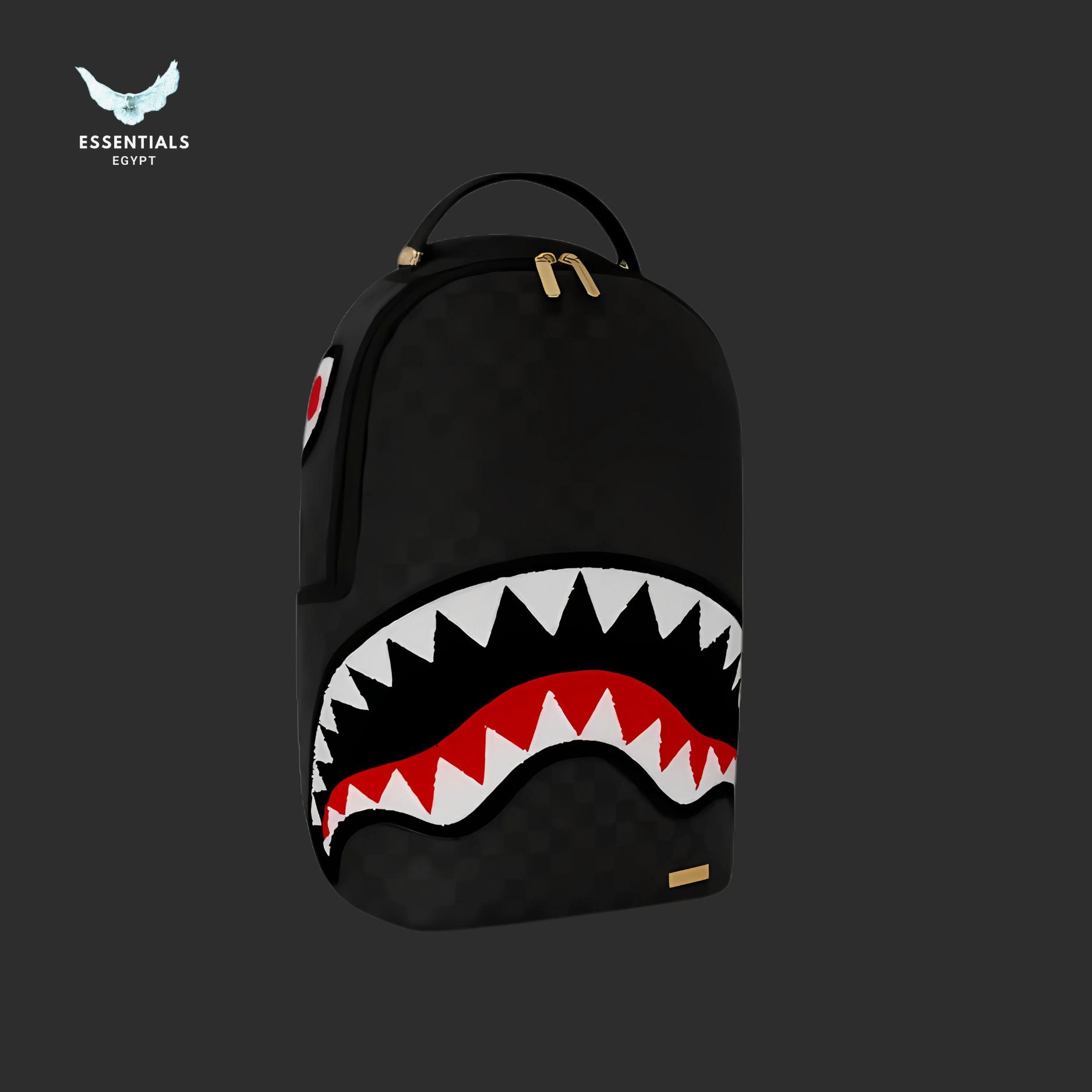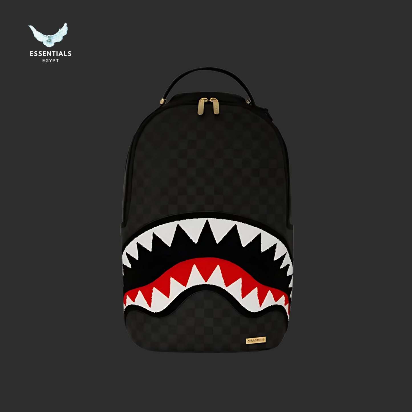 The iconic Sprayground black shark backpack. Timeless streetwear style. 100% authentic. Delivery across Egypt. Dimensions: 45.7 cm × 15.2 cm × 29.2 cm.