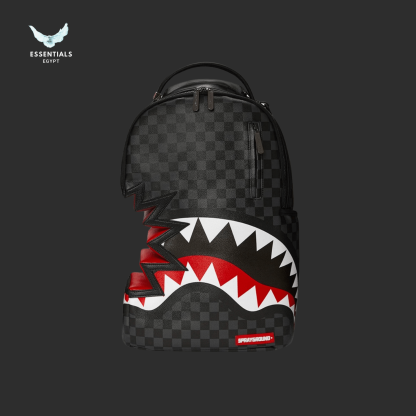 Infrared black checkered base with shark bite and jaw graphics. Eye-catching and functional. Dimensions: 45.7 cm × 15.2 cm × 29.2 cm.