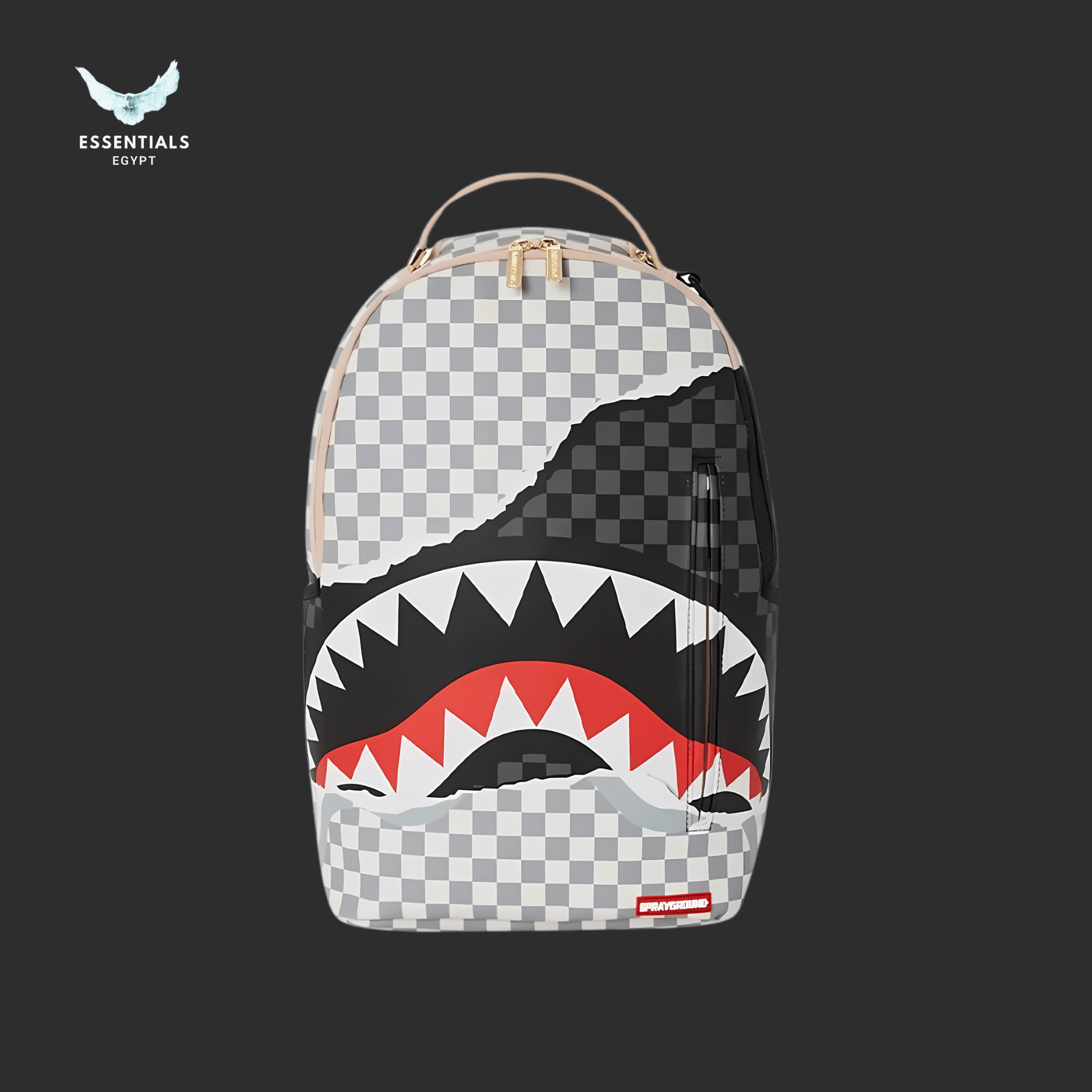 Monochrome checker print with a shark bite tear. Bold contrast look. Dimensions: 45.7 cm × 15.2 cm × 29.2 cm.