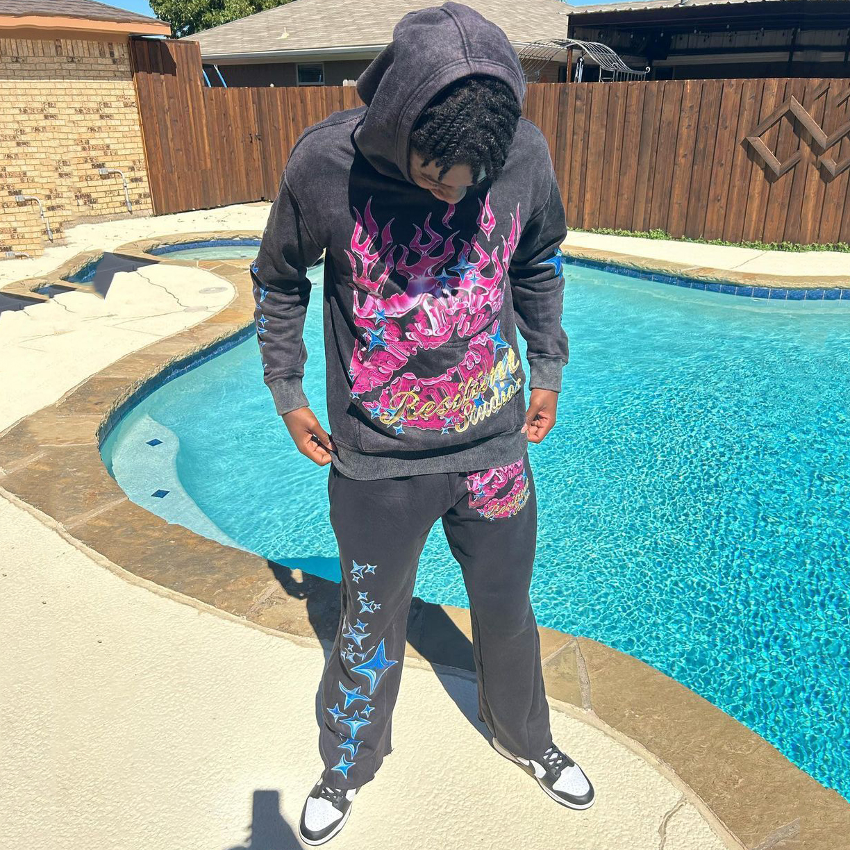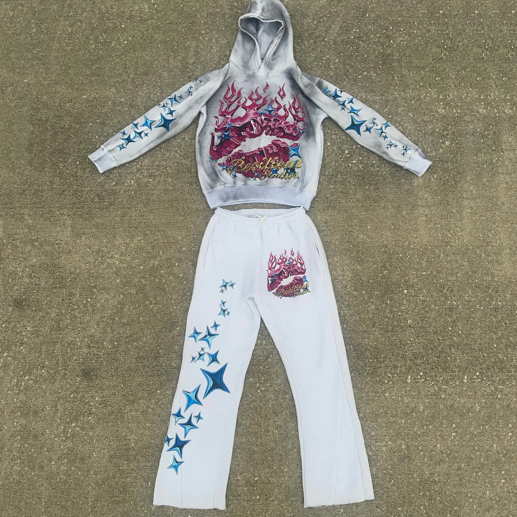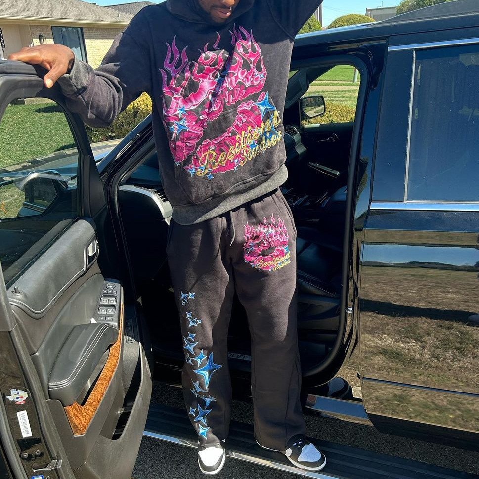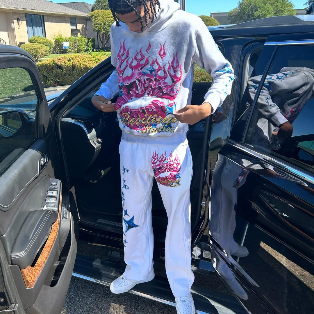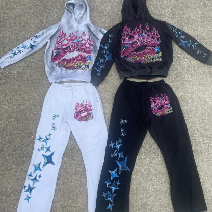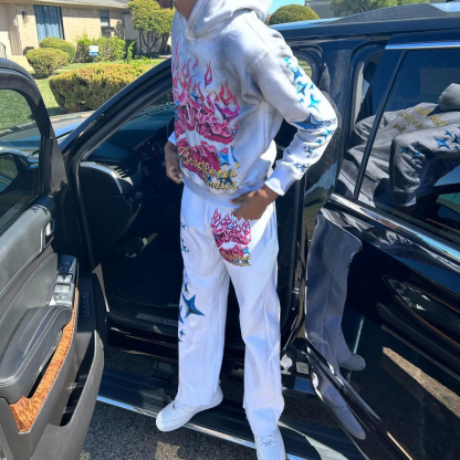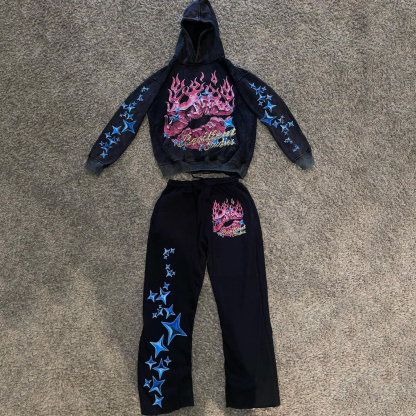 Multi-Element Print Hoodie Sweatpants Two Piece Set