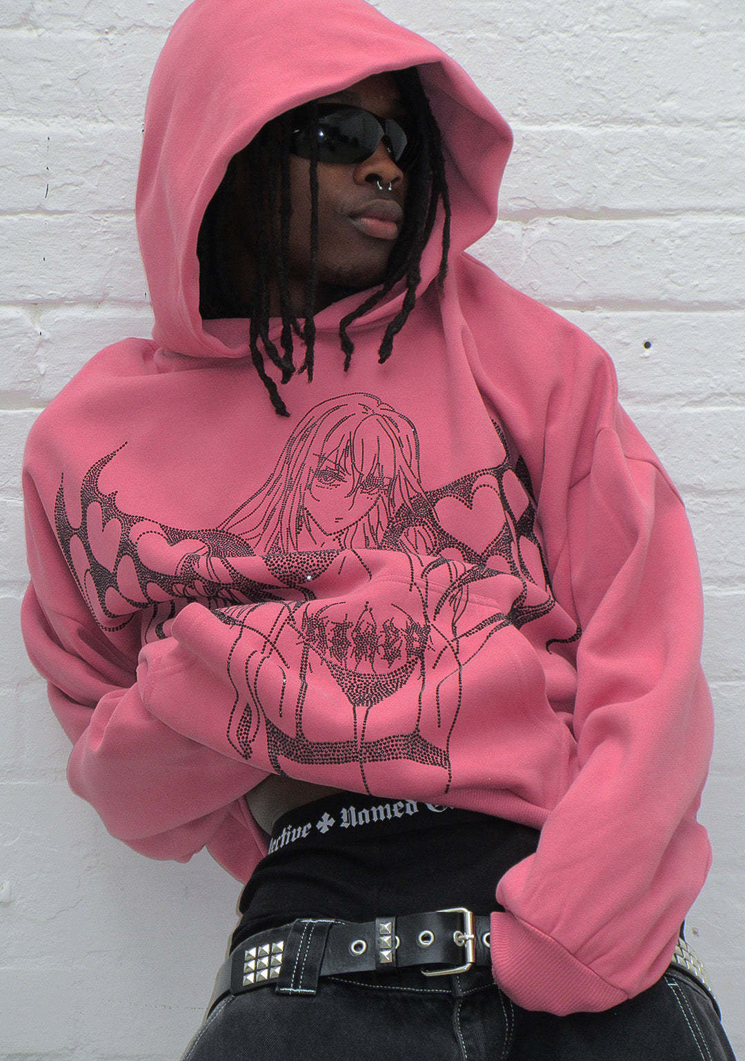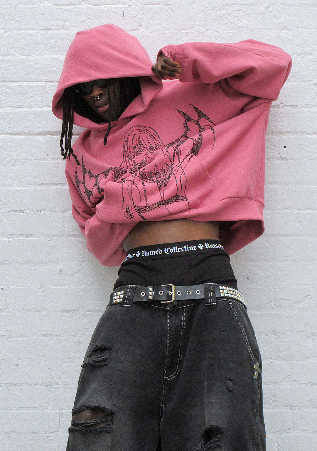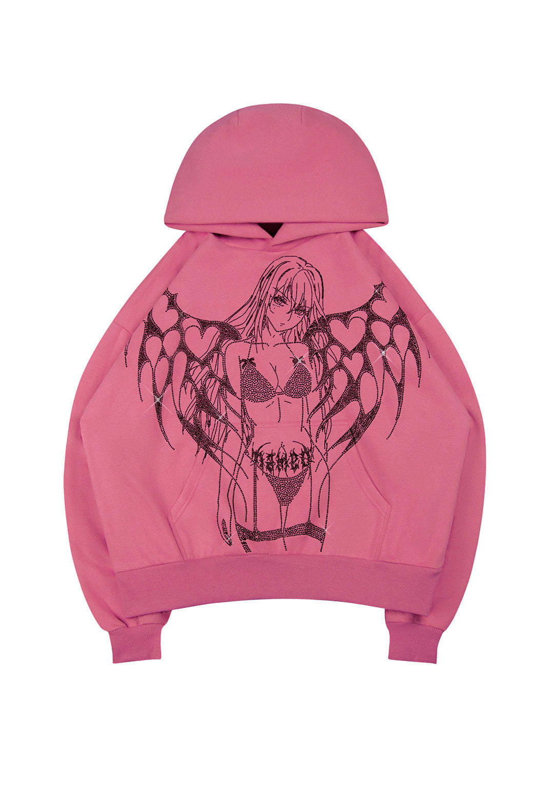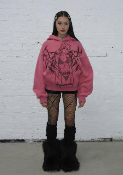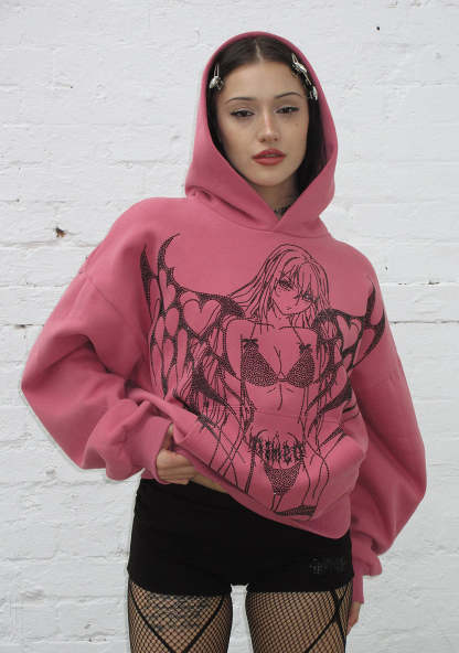 STRANGERS RHINESTONE ANGEL PULLOVER HOODIE DUSKY PINK