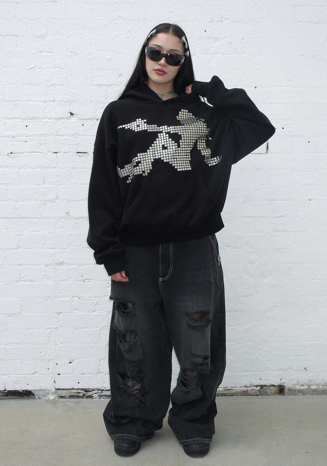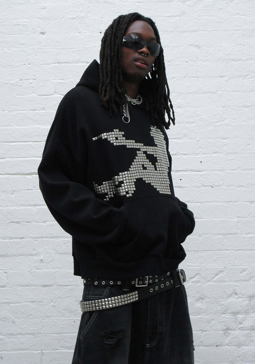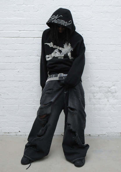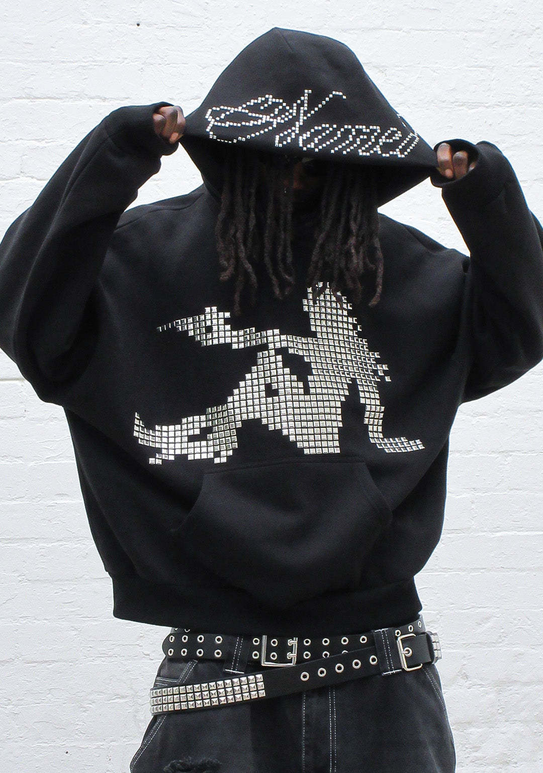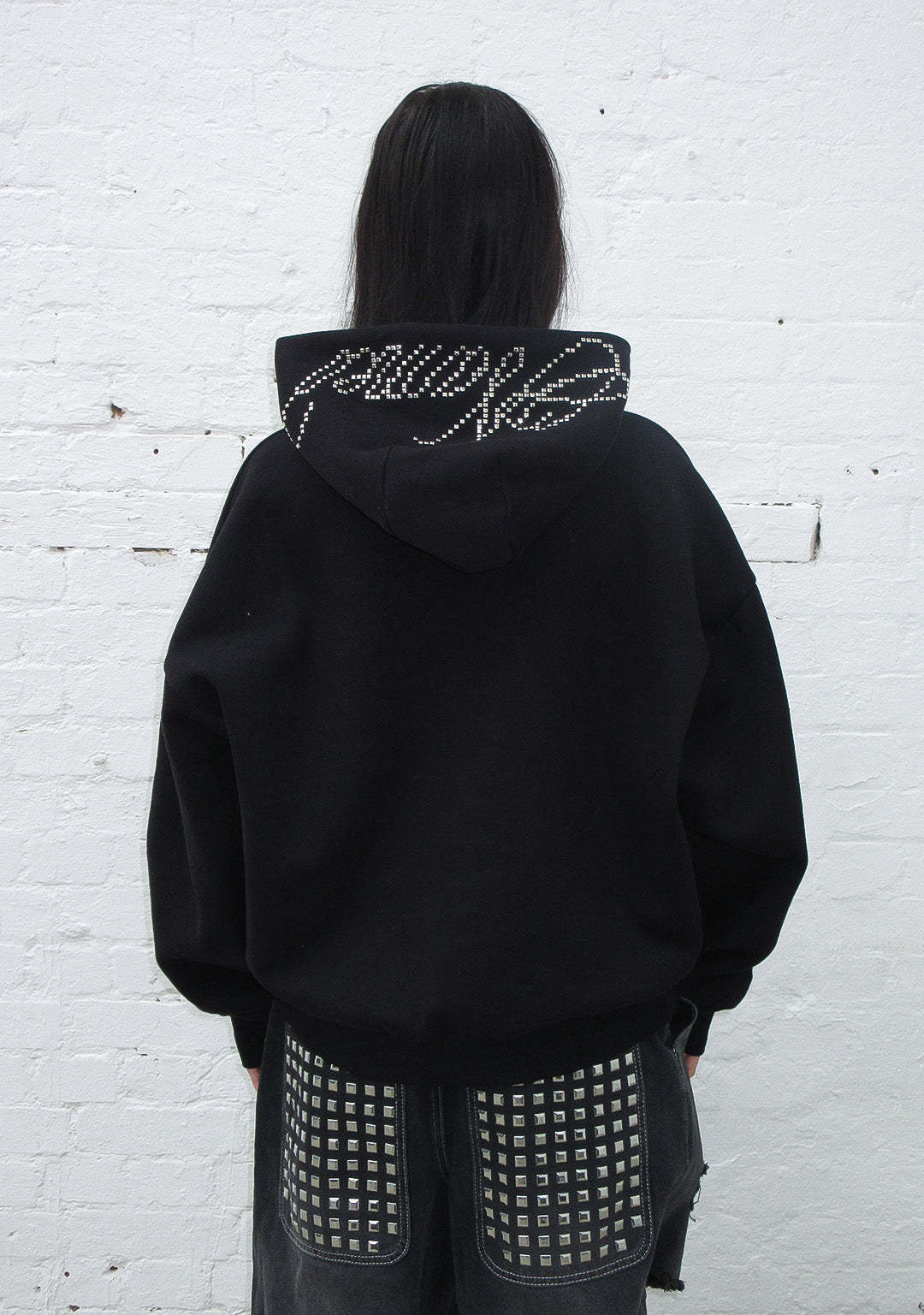 STRANGERS STUDDED SILHOUETTE PULLOVER HOODIE BLACK