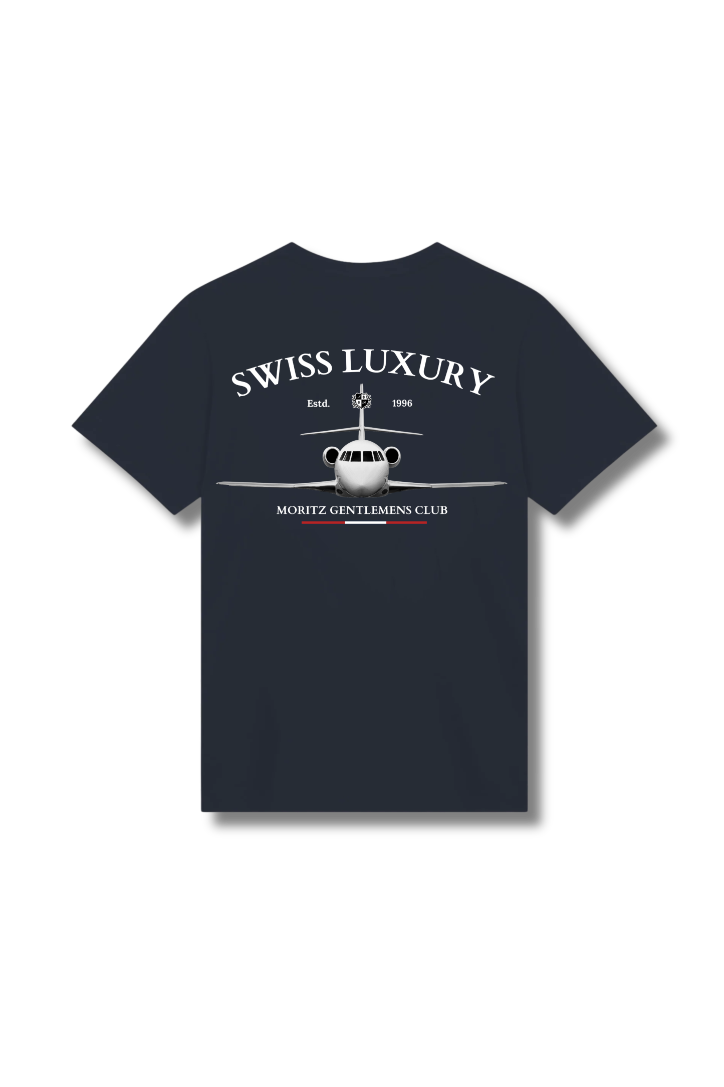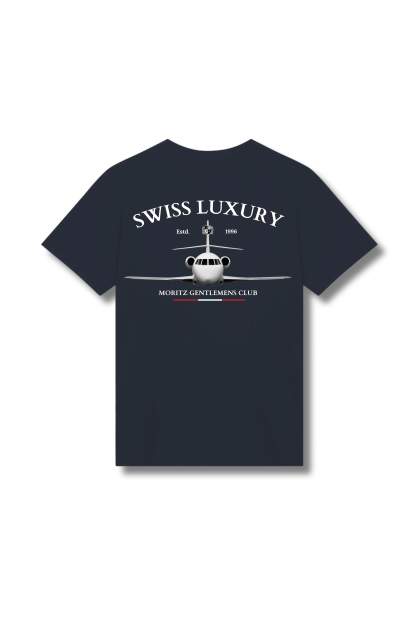 The Swiss Luxury T-shirt, crafted from 100% premium cotton for a smooth, structured feel. Featuring a sleek jet design that embodies sophistication and modern elegance.