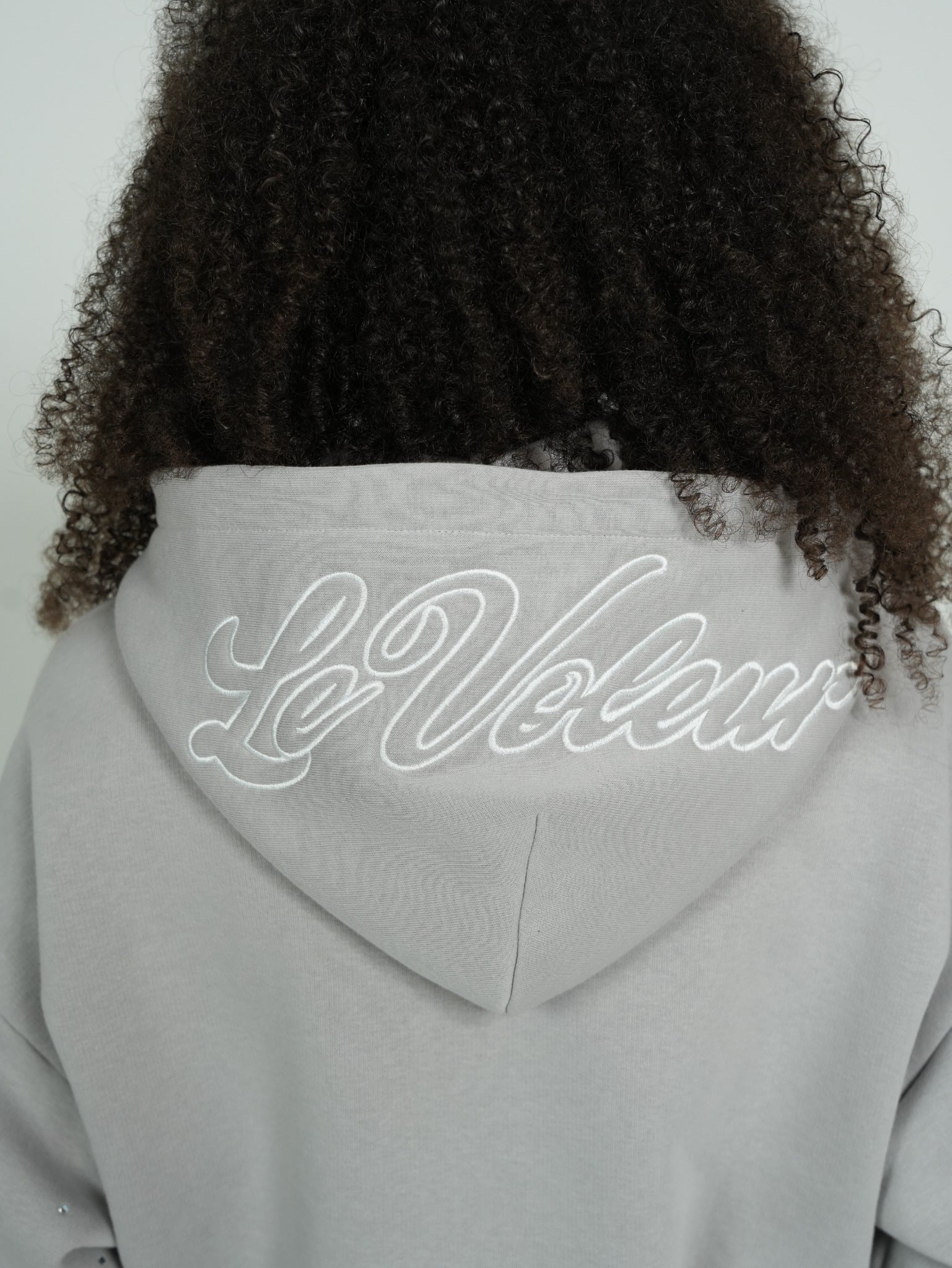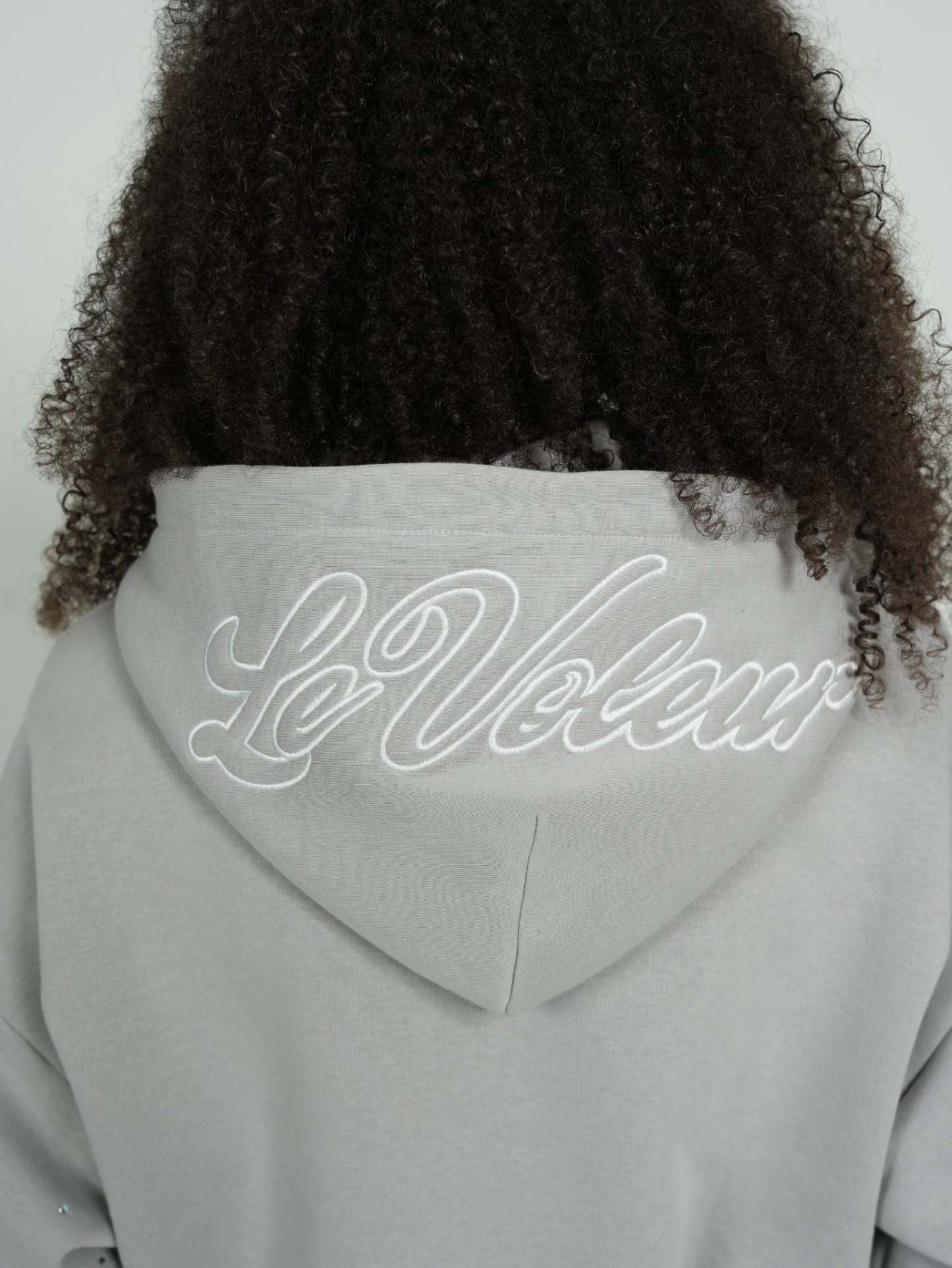 Outlined-LeVoleur-Logo embroided on the hoodie