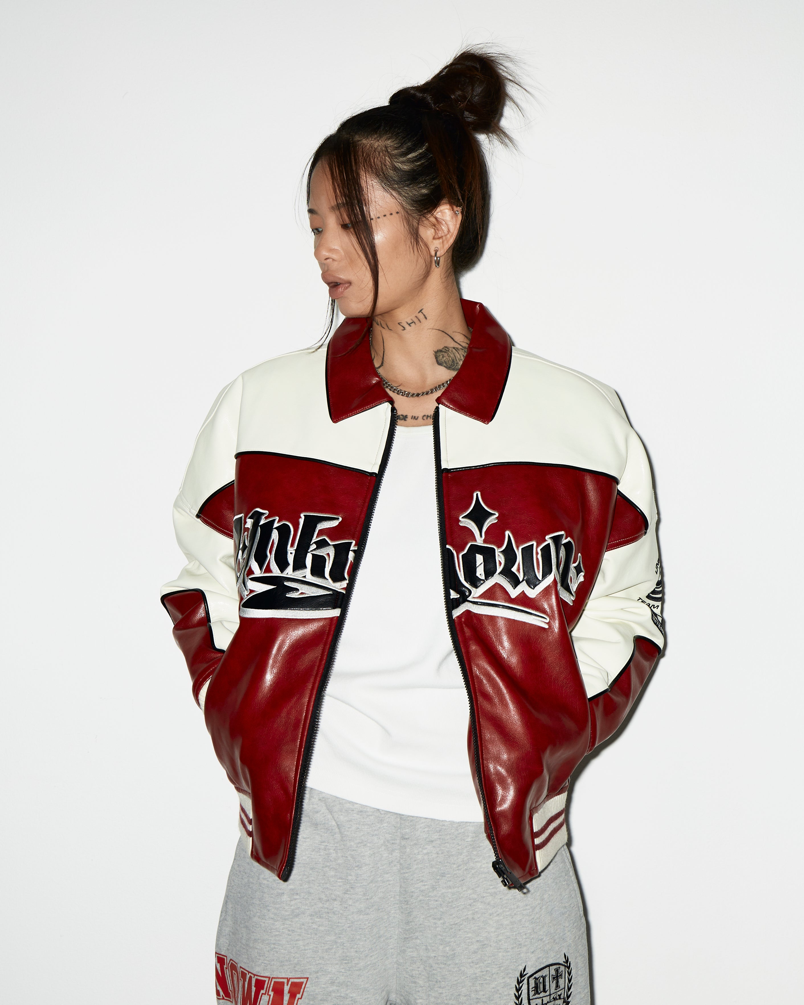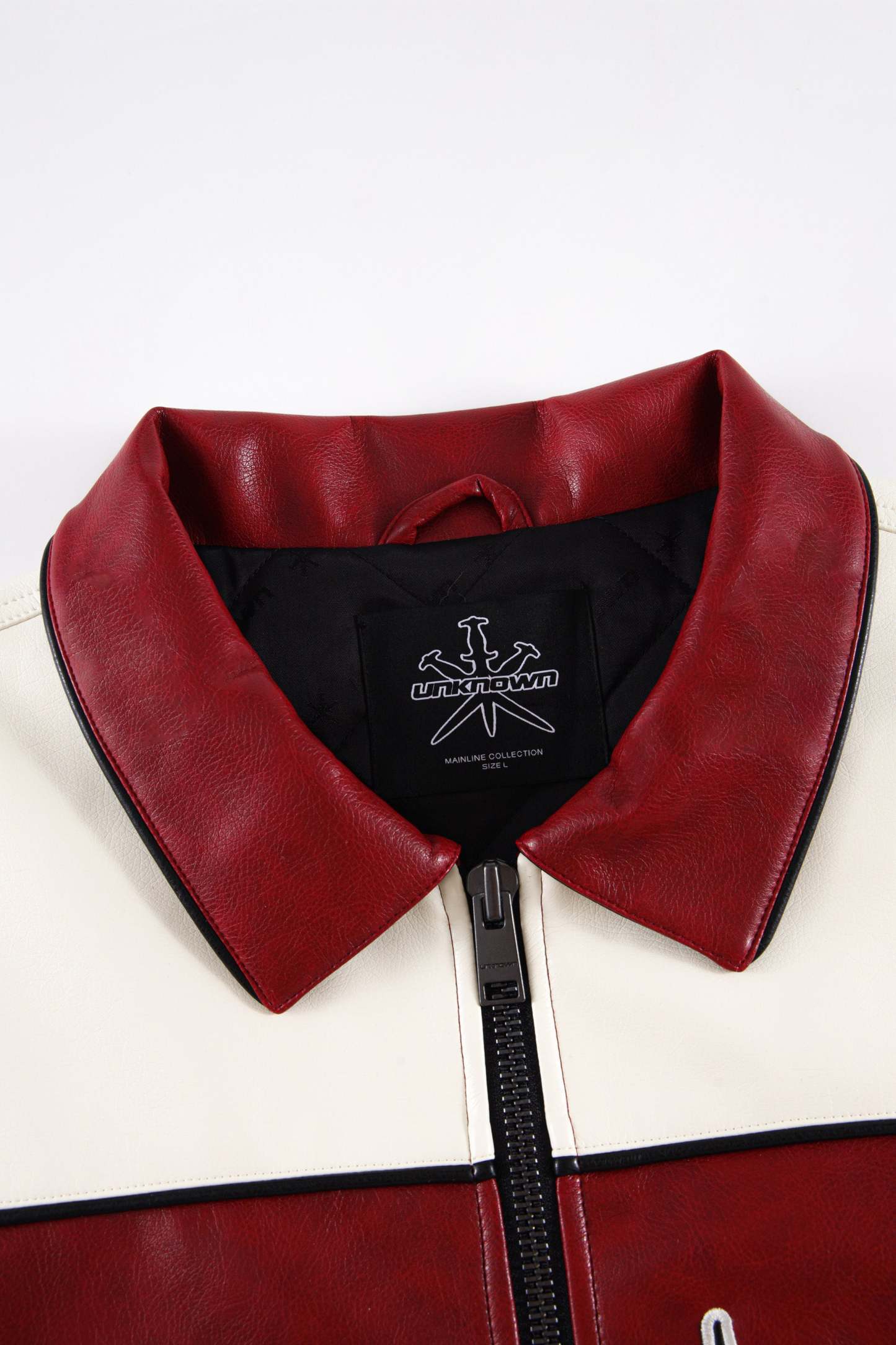 OFF WHITE AND RED VEGAN LEATHER