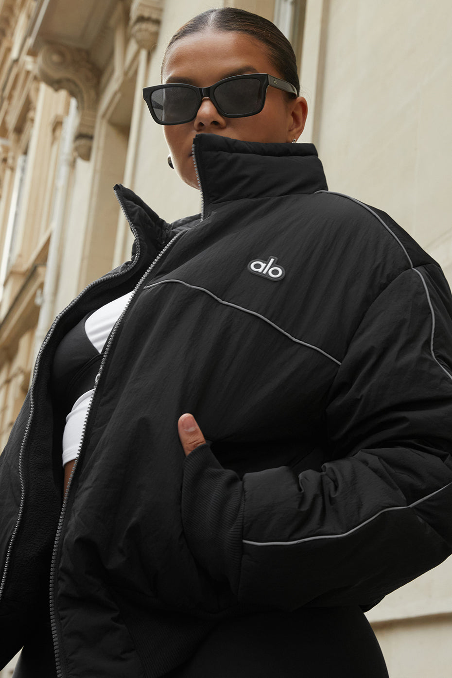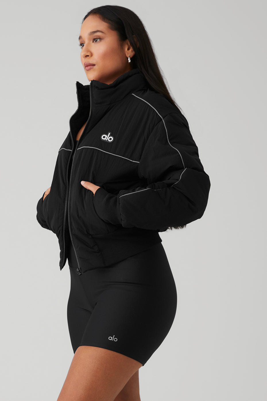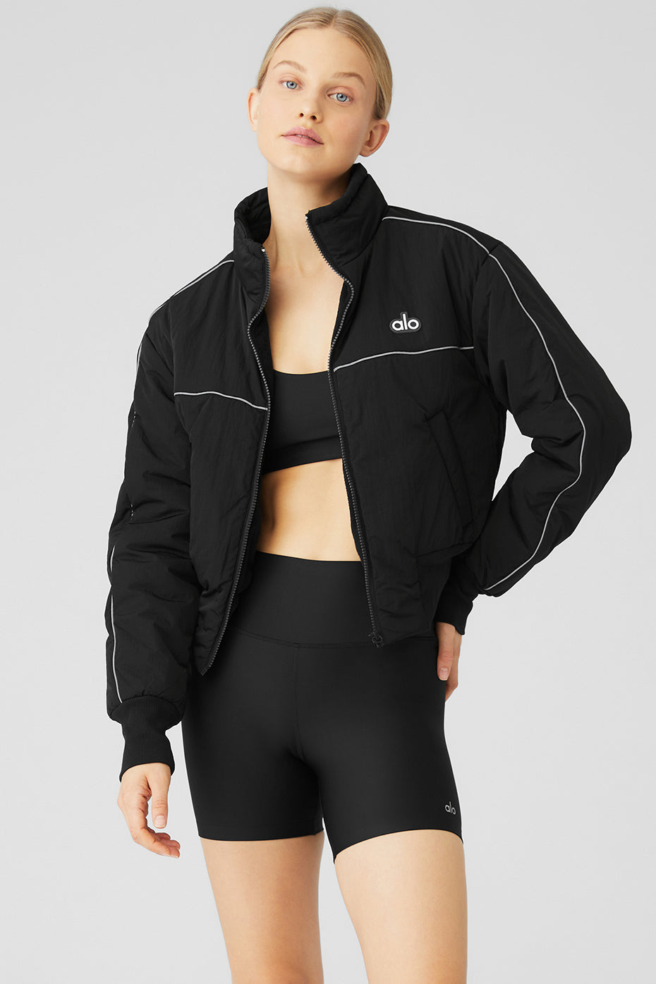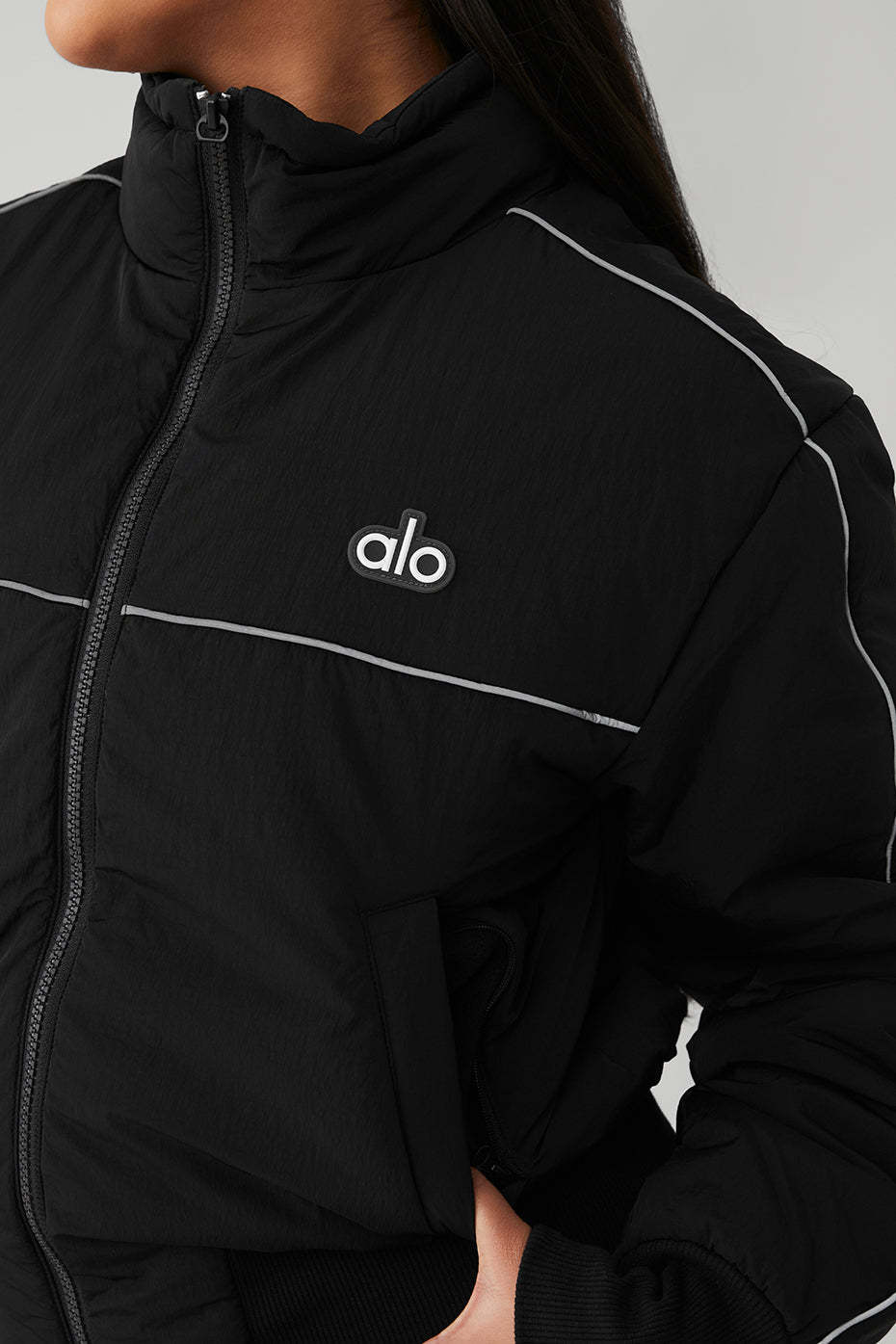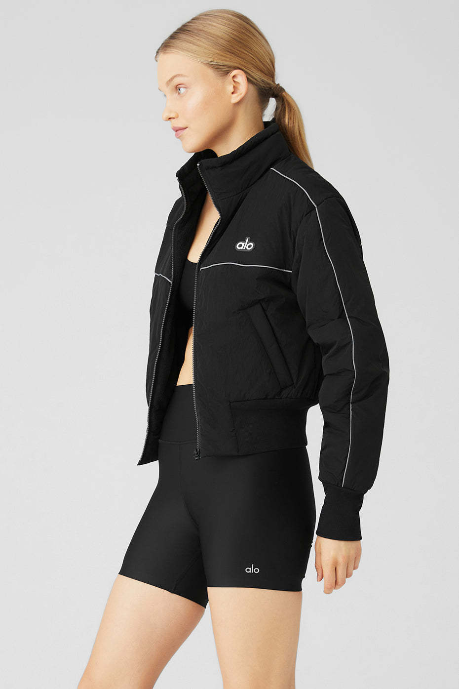 Stay in the race with this luxe layer. The Drop Top Jacket is the ultimate go-to when chilly weather strikes, with a fleecy interior, handy zippered side pockets for small essentials and a ribbed knit waistband for a subtle cinched effect. Layer it over a cute crop top and statement high-waist leggings and hit the pavement.