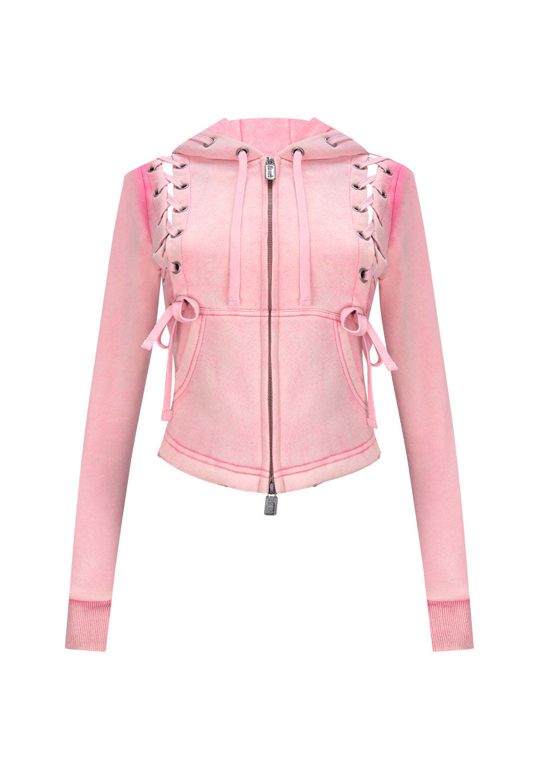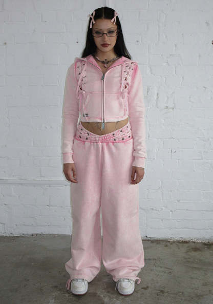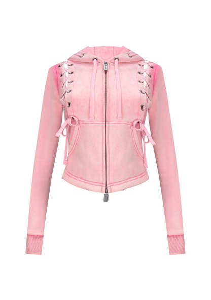 VENDETTA LACE UP FITTED ZIP HOODIE WASHED BABY PINK