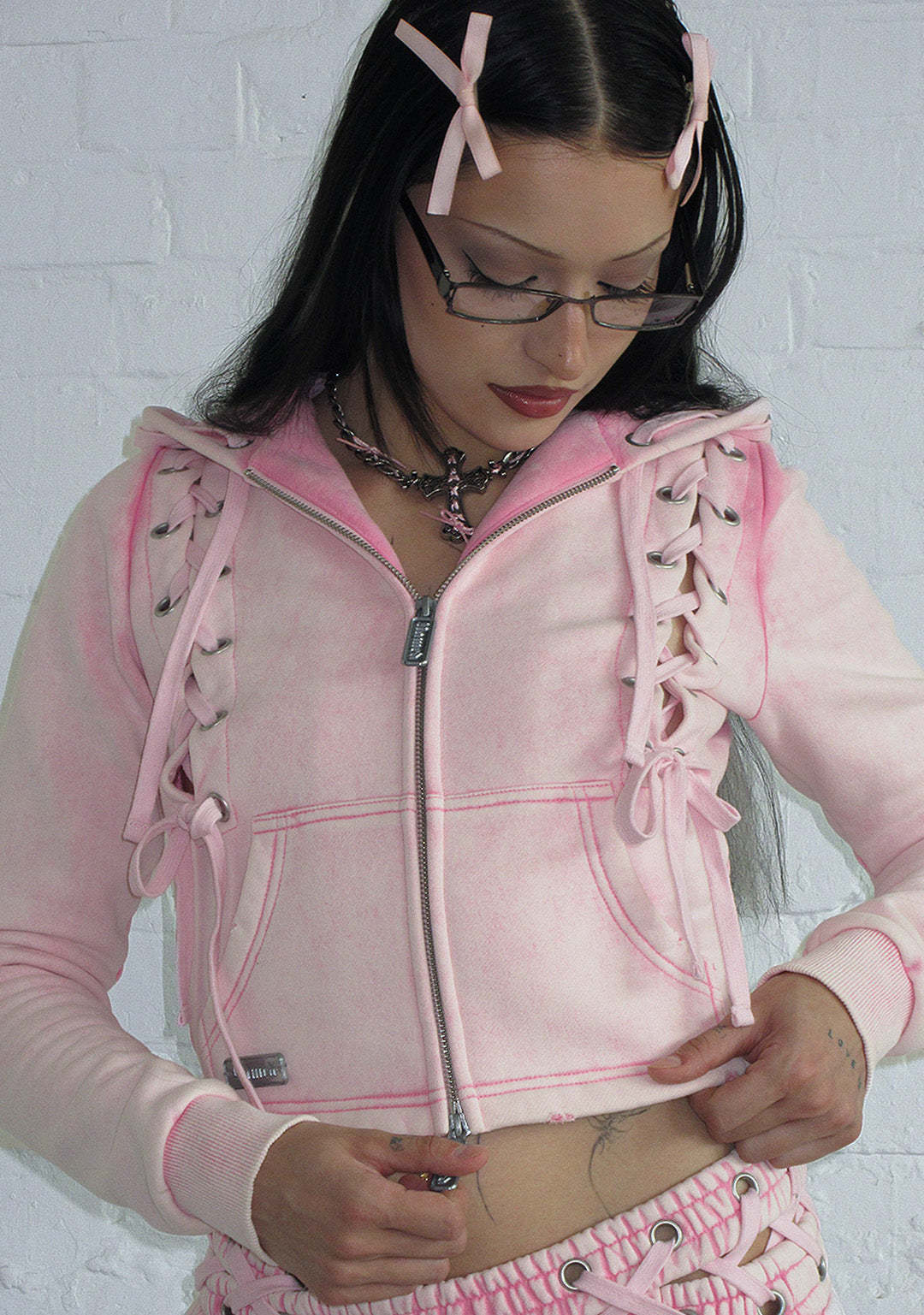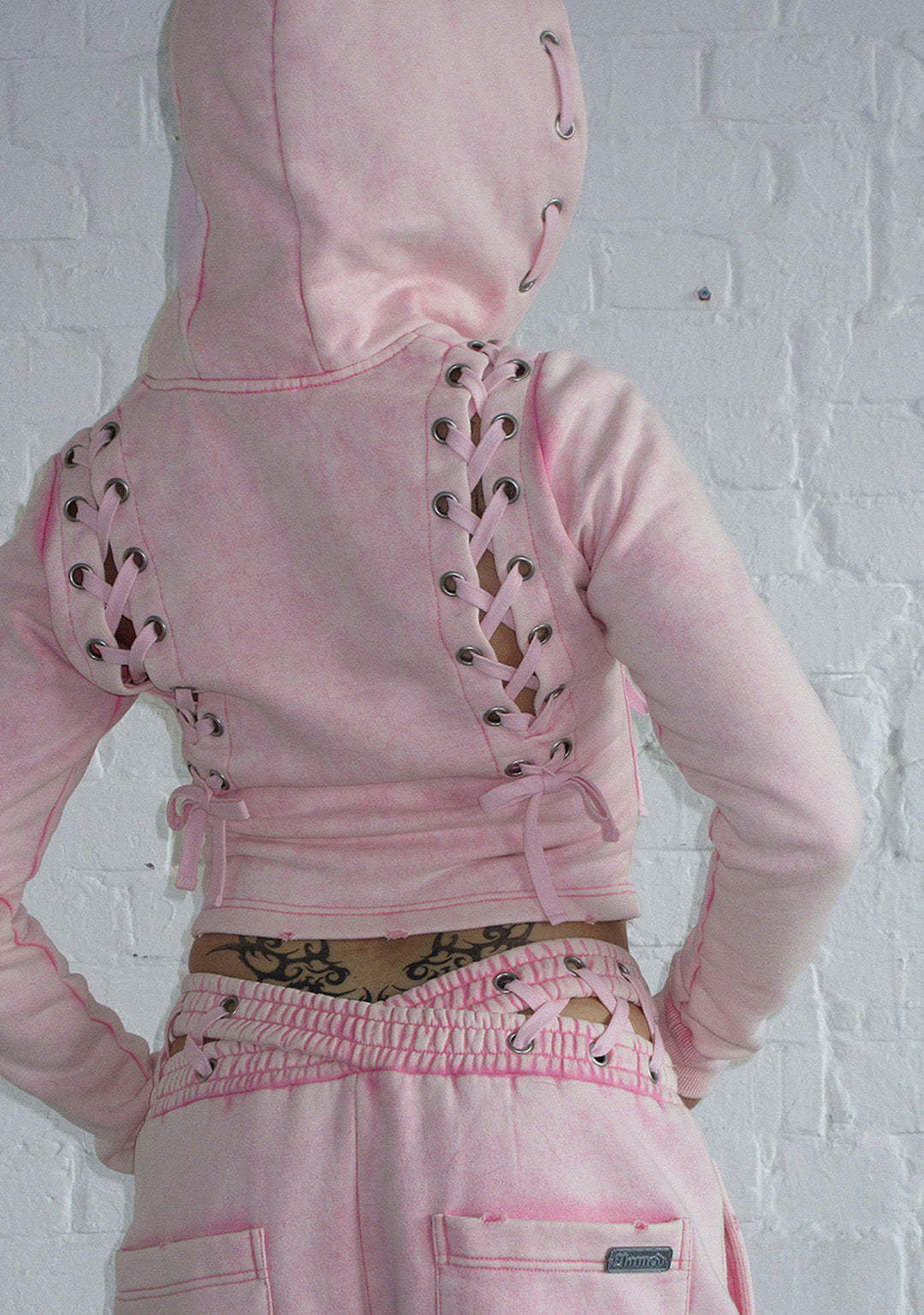 ★ Featuring lace-up eyelet corset detailing across the front, hood and back of hoodie