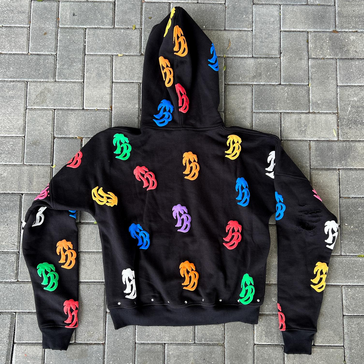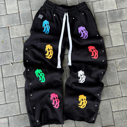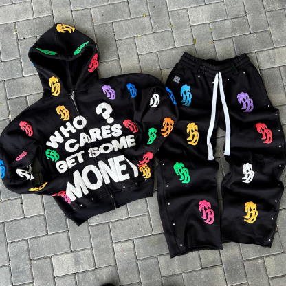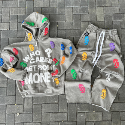 Vintage Letter Print Zip-Up Hoodie Set