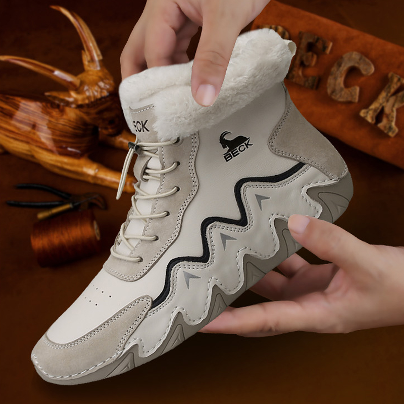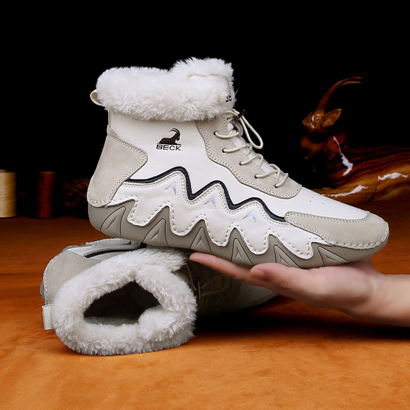 Material: cowhideStyle: Outdoor casual fashion, hand stitched shoes, cotton bootsBoot height: 10-20cmInside shoes: Short plushFunction: warm, non-slip