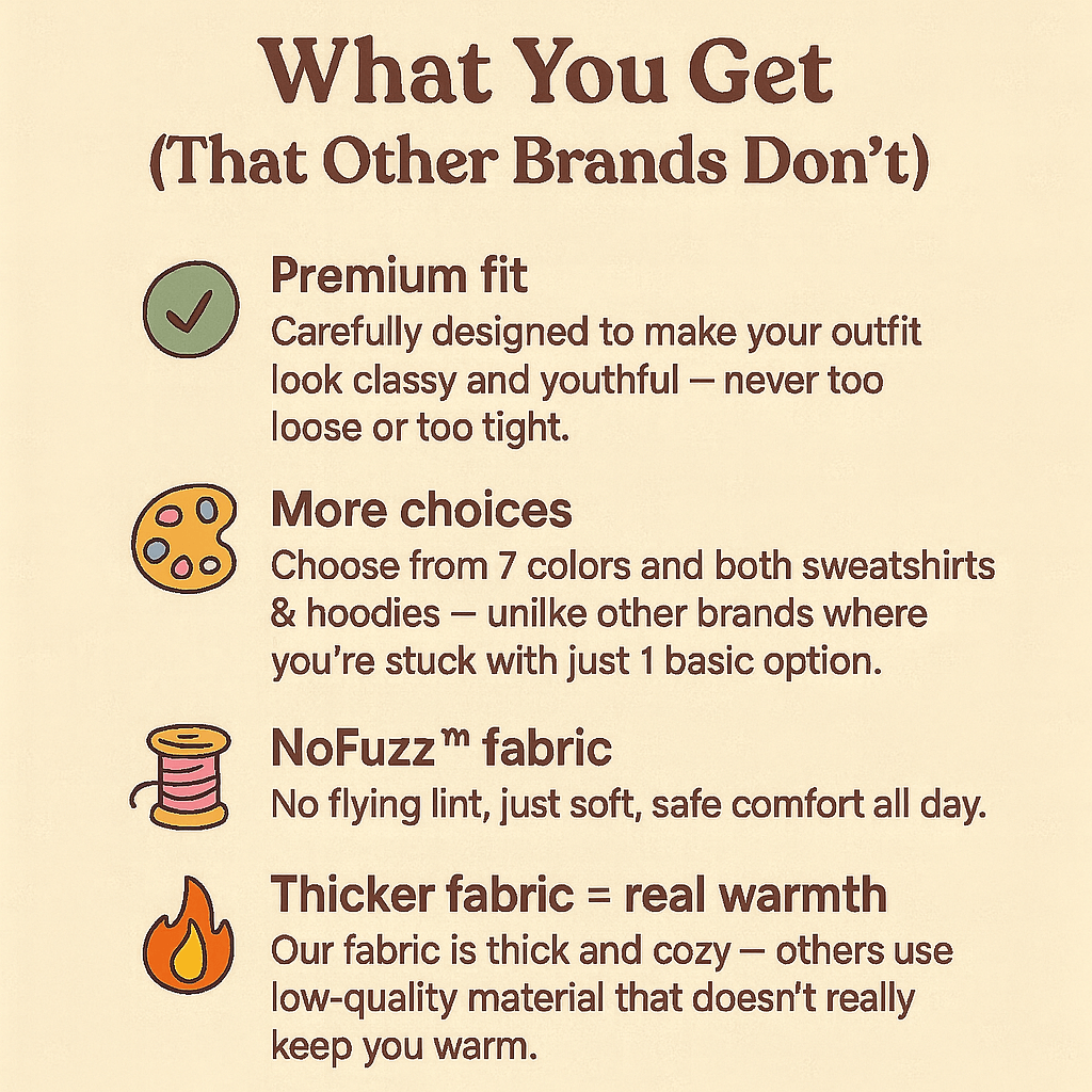 – Sweatshirt & Hoodie: 50/50 cotton/polyester blend